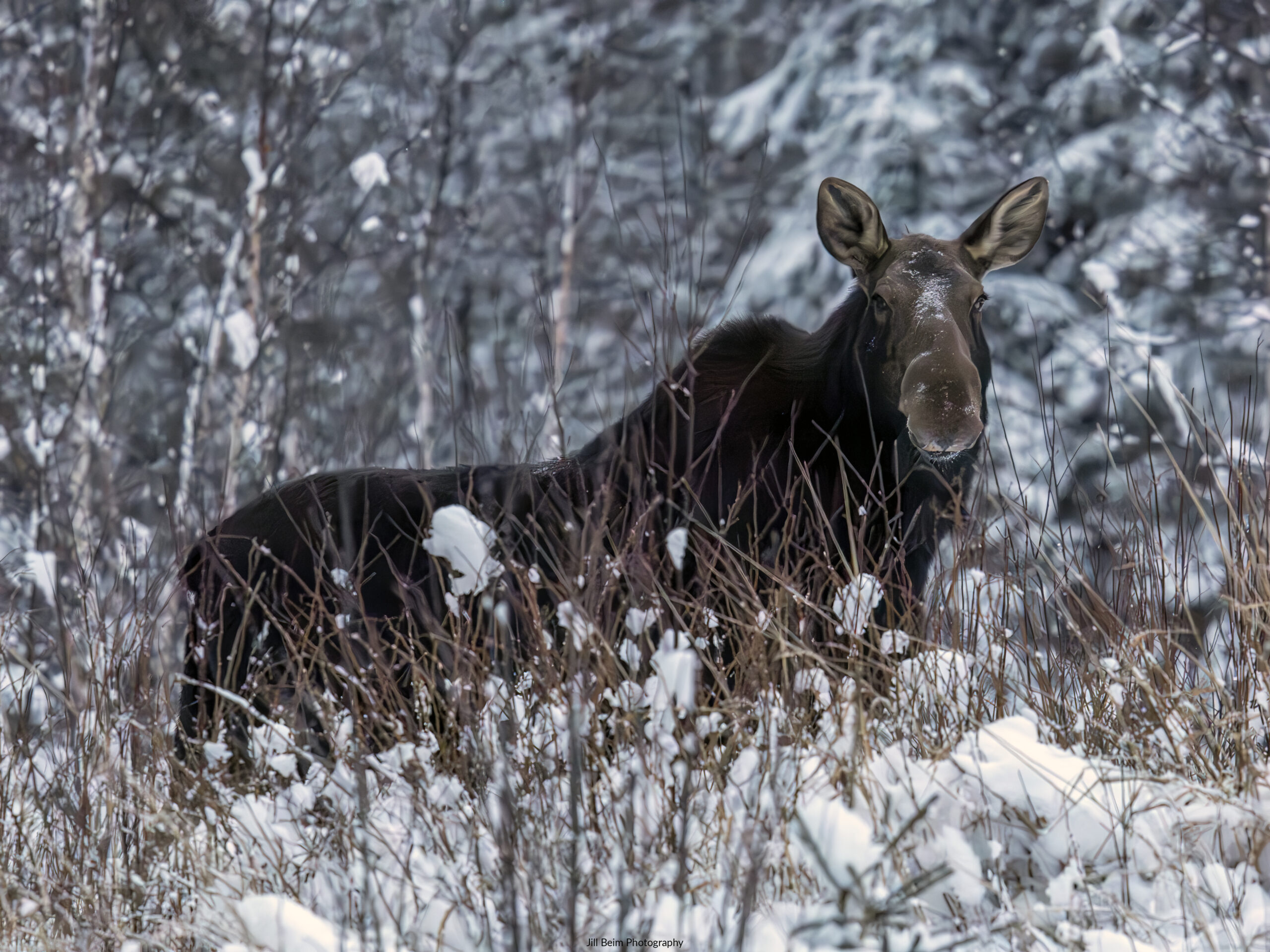 Moose crossing a road in the Superior National Forest